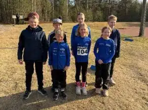 Eemil, Eeli, Oliver, Ellen, Hertta, Emma ja Aleksi edustivat Kenttäkarhuja pm-maastoissa